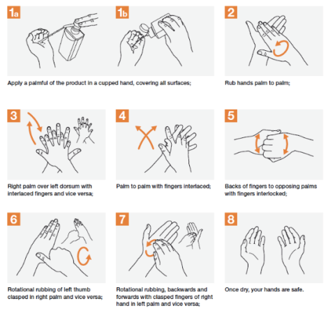 WHO-recommended hand hygiene (Courtesy of World Health Organization)