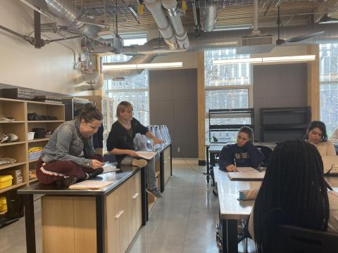 Drake Lee-Patterson and Stephanie Bilodeau review an assignment